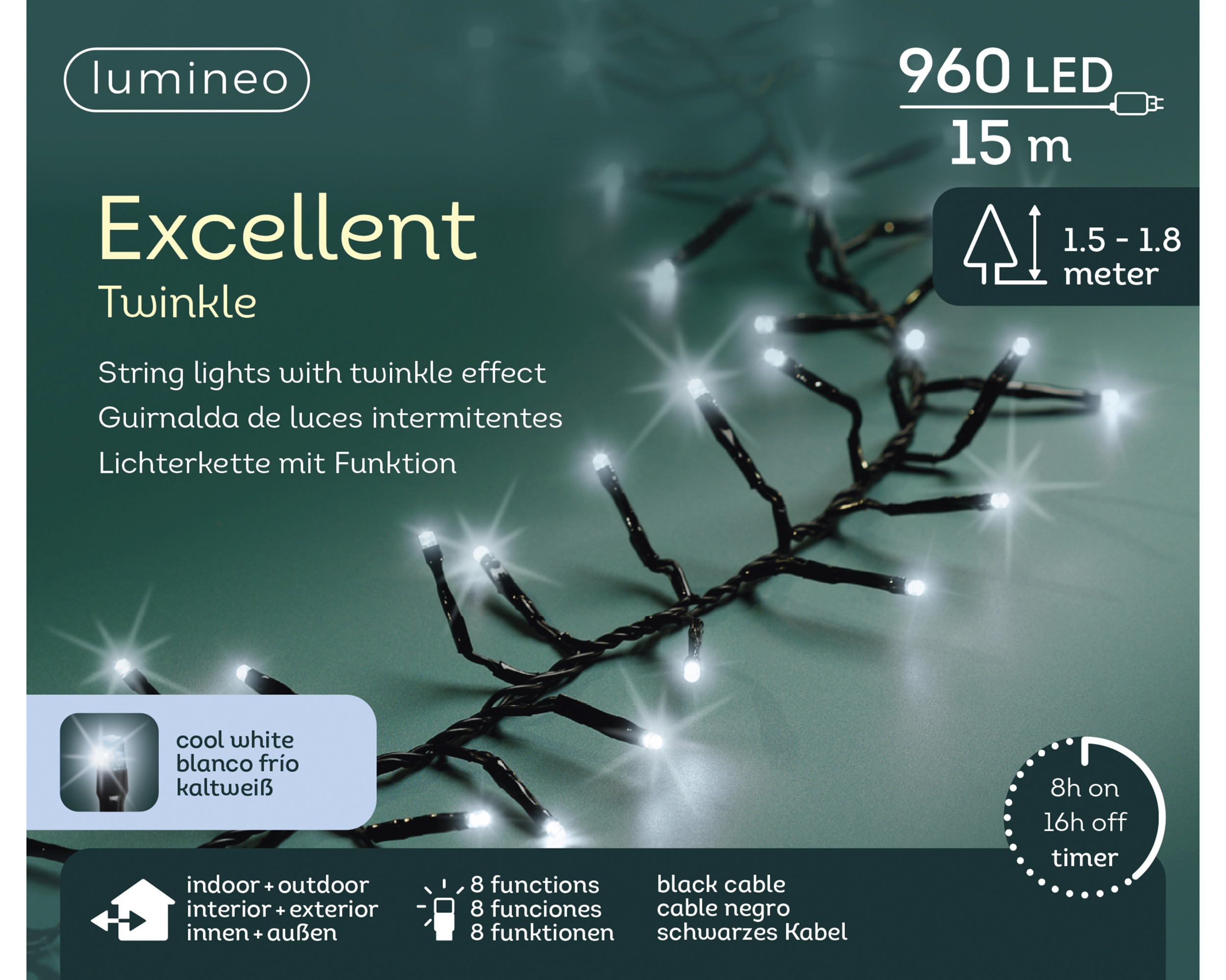 Oświetl swoją przestrzeń zewnętrzną w magiczny sposób dzięki Lampkom LED zewnętrznym o długości 1500 cm! Z 960 intensywnymi diodami LED w kolorowej skrzynce, te lampki doskonale nadają się do stworzenia niepowtarzalnej świątecznej atmosfery lub do uświetnienia letnich wieczorów w ogrodzie. Ich świecące światło doda wyjątkowego blasku Twoim spotkaniom na świeżym powietrzu oraz sprawi, że każda chwila stanie się jeszcze bardziej magiczna. Wprowadź do swojego otoczenia odrobinę radości i wyjątkowości dzięki tym efektownym lampkom, które z pewnością zachwycą każdego gościa. Nie czekaj, stwórz swoją własną iluminację i ciesz się każdą chwilą!